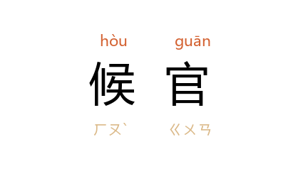 ⒈ 迎送宾客的候人,主管斥候的军候,占卜吉凶的官员等,都可称候官。(1)占候之官。参见“候人”、“候者”。
