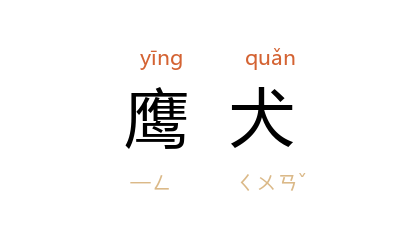 ⒈ 田猎逐猎物的鹰和犬,喻供驱使奔走的人,多指权贵豪门的爪牙。