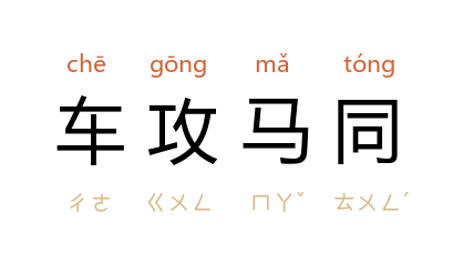 ⒈ 《诗·小雅·车攻》:“我车既攻,我马既同。”毛传:“攻,坚;同,齐也。”后以“车攻马同”谓战车坚固,马匹整齐。