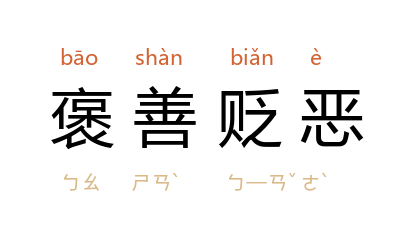 ⒈ 褒:赞扬;贬:批评。对好人好事加以赞扬;对坏人坏事加以斥责。指分清善恶,提出公正的评价。