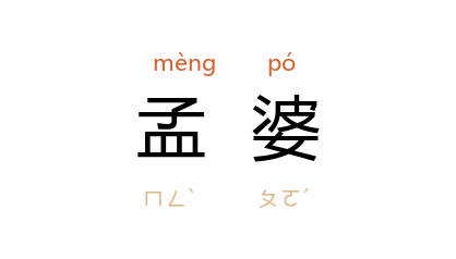 ⒉ 神话传说中的女神。采取俗世药物,合成似酒非酒的孟婆汤,让诸鬼魂喝下,忘记前生各事。