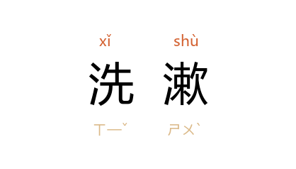 引宋 鲁应龙 《闲窗括异志》:“海盐县 蒋十八 居士、 蒋念二 孺人,日诵《大乘》,断除嗜欲,一日洗潄,更衣烧香,念佛书颂而终。”《水浒传》第二二回:“当晚弟兄两个,拴束包裹。到四更时分起来,洗漱罢,吃了早饭,两个打扮动身。”艾明之 《雨》:“他用凉水匆匆洗漱了一下。”