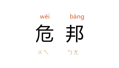 引《论语·泰伯》:“危邦不入,乱邦不居。”明 刘基 《嘉兴路重修陆宣公书院碑铭》:“出入危邦,扶持庸君。”郁达夫 《中年次陆竹天氏韵》:“叔世天难问,危邦德竟孤。”