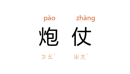 一本作“炮仗”。亦作“砲杖”。亦作“礮仗”。即爆竹。 《三遂平妖传》第十八回:“楼房好似破灯笼,土库浑如铁砲杖。”