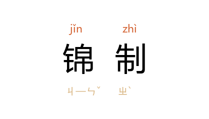 ⒈ 裁制锦衣。据《左传·襄公三十一年》载,子皮欲使宠臣尹何为家邑之宰,子产以为尹何年少,不堪此任。喻之曰:“子有美锦,不使人学制焉。大官、大邑,身之所庇也,而使学者制焉。”后因以“锦制”比喻学为政。