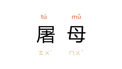 引《楚辞·天问》:“啟 棘宾商,《九辩》、《九歌》。何勤子屠母,而死分竟地?”朱熹 集注:“屠母,疑亦谓《淮南》所説:‘ 禹 治水时,自化为熊,以通轘辕之道, 涂山氏 见之而慙,遂化为石,时方孕 啟,禹 曰:“归我子!”