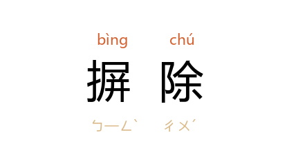 引郁达夫 《蜃楼》三:“他一时把杂念摒除,静听了一忽船的划子击水的清音。”马南邨 《燕山夜话·一个鸡蛋的家当》:“历来只有真正老实的劳动者,才懂得劳动产生财富的道理,才能够摒除一切想入非非的发财思想。”