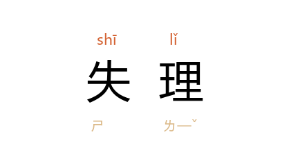 引《庄子·至乐》:“庄子 之 楚,见空髑髏,髐然有形,撽以马捶,因而问之,曰:夫子贪生失理,而为此乎?”成玄英 疏:“夫子贪欲资生,失於道理,致使夭折性命而骸骨为此乎?”三国 魏 曹植 《王仲宣诔》:“筭无遗策,画无失理。”《晋书·刘颂传》:“帝以 颂 持法失理,左迁京兆太守。”《<诗>大序》“政教失” 唐 孔颖达 疏:“政教言失者,非无政教,但施之失理耳。”