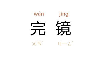 ⒈ 南朝 陈 将亡时,太子舍人 徐德言 知夫妻不能相守,因破镜为二,与妻 乐昌公主 各执其一,相约作为失散后重逢时的信物。及 陈 亡,夫妻离散。后因破镜相合而得夫妻团圆。见 唐 孟棨 《本事诗·情感》。后因以“完镜”比喻夫妻分离后重又团圆。参见“破镜重圆”。
