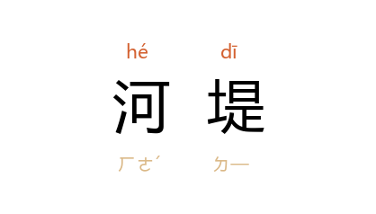 ⒈ 亦作“河隄”。沿河的挡水建筑物。多用土石等筑成。古多指 黄河 河堤。