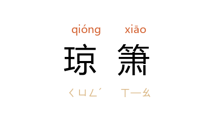 引唐 王翰 《飞燕篇》:“朝弄琼簫下綵云,夜踏金梯上明月。”元 虞集 《陪敬斋监郡登华盖》诗:“朝步仍垂苍玉珮,登高还引紫琼簫。”清 纳兰性德 《东风齐着力》词:“凭谁把、一天愁绪,按出琼簫。”