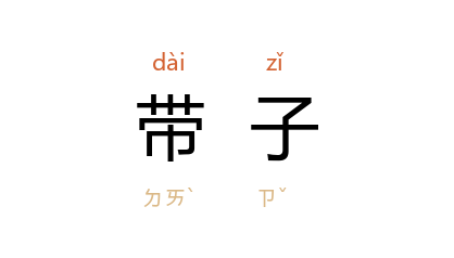 ⒉ 土匪的黑话指河。江湖人物忌讳说「死」、「活」等字。「河」与「活」谐音,故以「带子」代替。