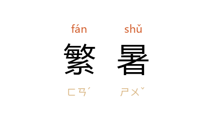 引唐 元季川 《泉山雨后作》诗:“风雨荡繁暑,雷息佳霽初。”《新五代史·唐臣传·郭崇韬》:“愿陛下无忘创业之难,常如 河 上,则可使繁暑坐变清凉。”清 许承钦 《夏仲自正觉寺游佛峪遂登龙洞山绝顶》诗之一:“申旦騖轻骑,胜游轻繁暑。”