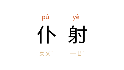 ⒈ 官名。 秦 始置, 汉 以后因之。 汉成帝 建始 四年,初置尚书五人,一人为仆射,位仅次尚书令,职权渐重。 汉献帝 建安 四年,置左右仆射。 唐 宋 左右仆射为宰相之职。 宋 以后废。 太平天囯 曾设仆射一职。