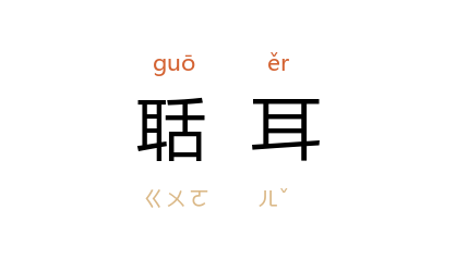 引《文选·嵇康·与山巨源绝交书》:「不喜俗人而当与之共事,或宾客盈座,鸣声聒耳。」《儒林外史·第三〇回》:「偶一听之,可也;听久了,也觉嘈嘈杂杂,聒耳得紧。」