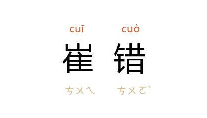引《汉书·司马相如传上》:“崔错癹骫,坑衡閜砢;垂条扶疏,落英幡纚。”颜师古 注:“崔错,交杂也。”元 邓牧 《见尧赋》:“则吾俯而观地,见山川、草木、羽毛、鳞介之崔错柴池,则必惻然伤。”