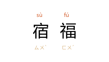 引南朝 宋 刘义庆 《幽明录·刘晨阮肇》:“﹝ 刘晨 阮肇 ﹞至十日后,欲求还去。女云:‘君已来是,宿福所牵,何復欲还耶?’”南朝 宋 鲍照 《侍郎报满辞阁疏》:“宿福餘庆,爰遘圣明。”
