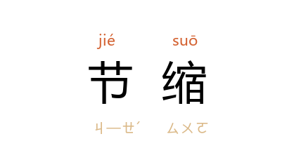 引宋 叶适 《绩溪县新开塘记》:“﹝ 王木叔 ﹞治县节缩,稍得餘钱,遂请於监司,买民田使为之,古跡之废併修之,塘之所须楗桩木石皆买与之。”明 李东阳 《明故封翰林院编修文林郎谢公墓志铭》:“公自奉素俭,虽封锡,禄食仅仅,益自节缩为义举。”郁达夫 《她是一个弱女子》:“这中间并且又因为经济的窘迫,生活也节缩到了无可再省的地步。”