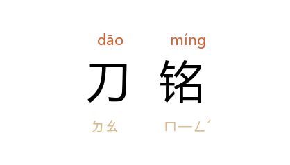 ⒈ 古代文体之一。刻在刀上的铭文。 北周 庾信 曾作《刀铭》诗三首。