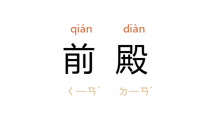 引《史记·秦始皇本纪》:“乃营作朝宫 渭 南 上林苑 中。先作前殿 阿房。”《文选·扬雄<甘泉赋>》:“前殿崔巍兮, 和氏 灵瓏。”李善 注:“前殿,正殿也。诸宫皆有之。 《汉书》曰:‘ 未央宫 立前殿。’”唐 王维 《扶南曲歌词》之四:“拂曙朝前殿,玉墀多珮声。”赵殿成 笺注:“汉 时 长乐、未央、建章、甘泉 诸宫皆有前殿,即正殿也。 《玉海》:‘ 周 曰路寝, 汉 曰前殿。’”