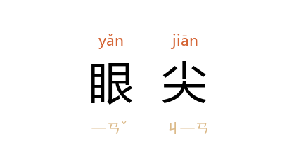 引《红楼梦·第四七回》:「凤姐儿眼尖,就先瞧见了,使眼色儿不命他进来。」