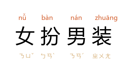 ⒈ 女子穿上男装,打扮成男子的模样。
