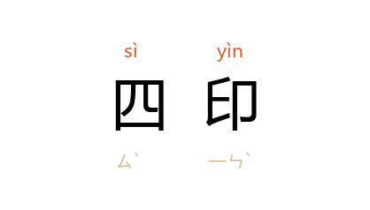 引宋 黄庭坚 《赠送张叔和》诗:“我提养生之四印,君家所有更赠君:百战百胜不如一忍,万言万当不如一默,无可简择眼界平,不藏秋毫心地直。”任渊 注:“宗门有三印,谓印空、印水、印泥。 山谷 作《云峯悦禪师语録序》云:‘不受然灯记别,自提三印正宗。’今云‘四印’,亦犹此意,谓忍、默、平、直也。”