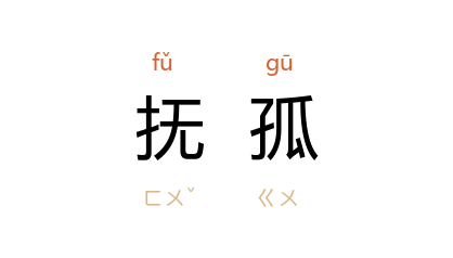 引南朝 陈 何胥 《哭陈昭》诗:“抚孤空对此,零泪欲奚言。”唐 杜甫 《遣怀》诗:“临餐吐更食,常恐违抚孤。”清 陆以湉 《冷庐杂识·嵇封翁》:“其室 杨太夫人,守志抚孤,备尝艰苦。”丁玲 《母亲》二:“爷爷们既不能替我还账,又不能替我抚孤,也就管不到我许多。”