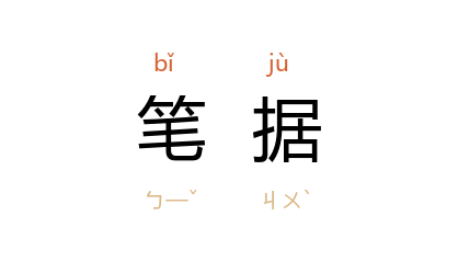 引《老残游记》第十八回:“随手翻案,检出 魏谦 笔据两纸。”《二十年目睹之怪现状》第六回:“何况又是出了笔据给他的。”鲁迅 《彷徨·孤独者》:“我父亲死去之后,因为夺我屋子,要我在笔据上画花押。”
