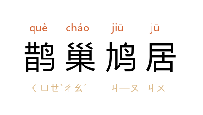 李六如 《六十年的变迁》第二卷第九章:“‘凤去台空’,虽已经过了一个短时期,然而‘鹊巢鸠居’,现在有人补缺了。”