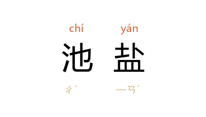 ⒈ 从咸水湖采取的盐,成分和海盐相同。我国西北各地和 山西省、内蒙古自治区 等地出产很多。古时垦地为畦,引含盐分的池水沃之,称作种盐,水耗则盐成,即为池盐。
