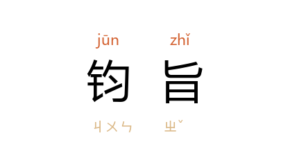 引《京本通俗小说·菩萨蛮》:“当下郡王钧旨分付都管。”《水浒传》第一〇二回:“两个公人带 王庆 上前禀道:‘奉老爷钧旨, 王庆 拿到。’”清 洪昇 《长生殿·收京》:“[外付令箭,小生接介]领钧旨。”