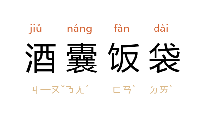 引《类说·卷二二·引荆湖近事》:「马氏奢僭,诸院王子仆从烜赫,文武之道,未尝留意,时谓之酒囊饭袋。」