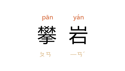⒈ 一种户外休闲运动项目,指攀爬陡峭岩壁。攀爬者通常需善用地形,并配合铆钉等器具,逐步上移,以便能顺利攻顶。