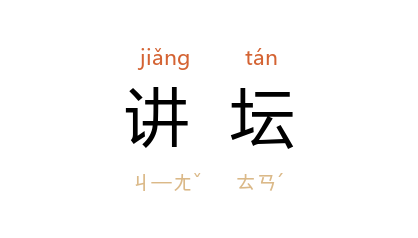 ⒈ 教师授课、演讲者演讲或神职人员讲道时所站立的台子。