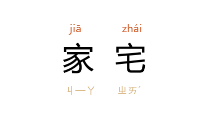 引宋 苏轼 《宿望湖楼再和》:“我行得所嗜,十日忘家宅。”元 马致远 《青衫泪》第一折:“兀那酒丧门临本命,饿太岁犯家宅。”《三侠五义》第三四回:“这明是搅乱太师家宅不安,暗里是与老师作对。”茅盾 《赵先生想不通》:“这一对儿长嫂小叔三日两头的吵得家宅不宁。”