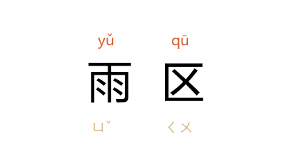 ⒈ 天气图上指示的一定时段内出现降水的地区。