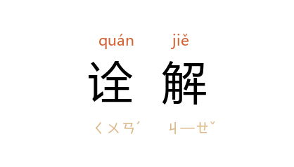 引《西游补》第五回:“文字艰深,便费詮解。”郭沫若 《李白与杜甫·李白与杜甫在诗歌上的交往》:“这首诗对于了解 李白 和 李 杜 二人的关系上,是一项重要的资料,我想把全诗分段地诠解在下边。”