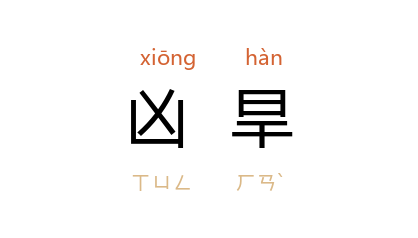 引《管子·立政》:“决水潦,通沟瀆,修障防,安水藏,使时水虽过度,无害於五穀,岁虽凶旱,有所秎穫,司空之事也。”汉 贾谊 《新书·瑰玮》:“即遇凶旱,必先困穷迫身,则苦飢甚焉。”《旧唐书·房式传》:“时讨 王承宗 於 镇州,配 河南府 馈运车四千两, 式 表以凶旱,人贫力微,难以徵发, 宪宗 可其奏,既免力役,人怀而安之。”
