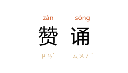 ⒈ 赞叹称颂。诵,通“颂”。 明 陆延枝 《说听》卷下:“﹝ 陆世明 ﹞即援笔书云:‘半窗花影人初起,一曲桐音月正中。’妓讚诵不已,徐言‘中’字恐不如‘高’字。