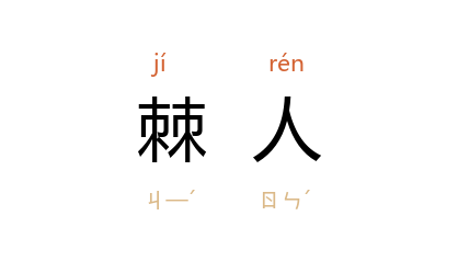 ⒈ 《诗·桧风·素冠》:“庶见素冠兮,棘人栾栾兮,劳心慱慱兮。”郑玄笺:“急于哀戚之人。”后人居父母丧时,自称“棘人”。