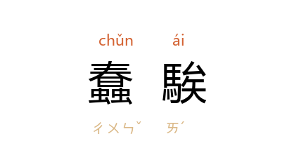 引宋 周密 《齐东野语·曹泳》:“熺(秦熺 )本 檜 妻党 王 氏子,蠢騃。尝燕亲宾,优者进妓, 熺 於座中大笑絶倒, 檜 殊不懌。”清 独逸窝退士 《笑笑录·郑村水牛》:“许苏州 嗣之,蠢騃,富於财,以貲入官。”