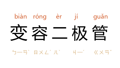 ⒈ 又称“可变电抗二极管”。利用pn结结电容随反偏压增大而减小的特性制成的半导体二极管。材料多为硅或砷化镓。用于谐振电路时为电调变容二极管,用于参量放大时为参放变容二极管,在功率源中作倍频和移相用时为功率阶跃变容二极管。