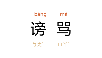 引《魏书·儒林传·李业兴》:“若有相乖忤,便即疵毁,乃至声色,加以谤駡。”宋 张耒 《明道杂志》:“一生常遭人谤駡。”明 刘基 《皇帝手书》:“然歹人恶严法,喜宽容,谤駡国家,扇惑非非莫能治。”