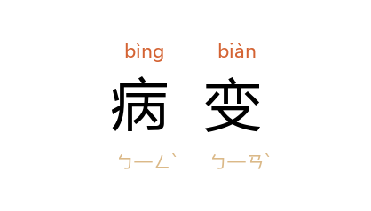 ⒈ 病理变化,乃因疾病导致体内细胞、组织产生变化,影响正常组织器官的功能及结构。