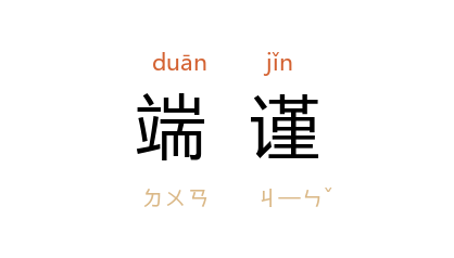 引《北史·恩幸传·王仲兴》:“仲兴 幼而端谨,以父任,早给事左右,累迁越骑校尉。”《旧唐书·孝友传·裴敬彝》:“敬彝 少聪敏,七岁时能属文,性又端谨,宗族咸重之。”明 宋濂 《题<唐太宗哀册文>后》:“至其小楷,极端谨有法。”