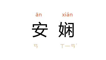 引清 吴炽昌 《客窗闲话初集·瘦马》:“诸秀女各有所业。称嫗为母、为祖母、为老老者,莫不娇容美质,举止安嫻。”丁玲 《母亲》三:“金先生 也跟在 于三太太 身后走了进来说道:‘ 吴幺妹 真是安娴得很,她们老太太昨天还同我说,愁她太不作声了。’”