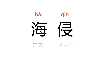 ⒈ 地面下沉时,海水淹没陆地。也叫海进。