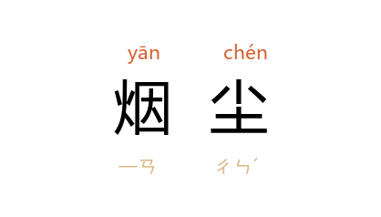 ⒊ 烽烟和战场上扬起的尘土,旧时指战火。