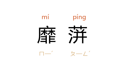 引《楚辞·天问》:“靡蓱九衢,枲华安居。”《文选·左思<魏都赋>》:“孰愈寻靡蓱於中逵,造沐猴于棘刺?”张铣 注:“靡,流貌。”明 刘基 《水龙吟·次韵和陈均以吹箫曲》词:“又 扶桑 日上,靡蓱光散,蓬池春晓。”